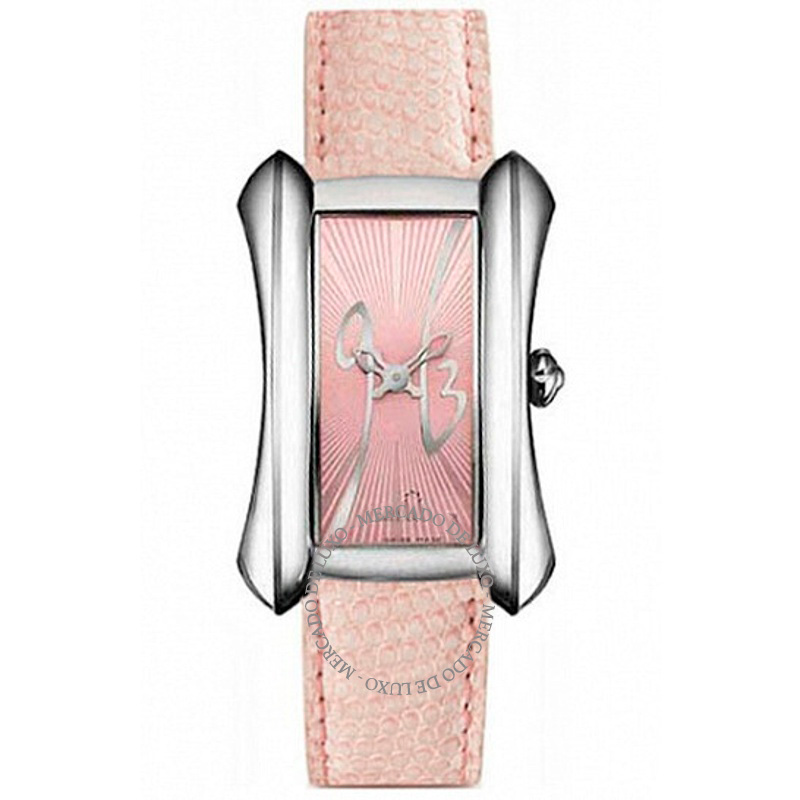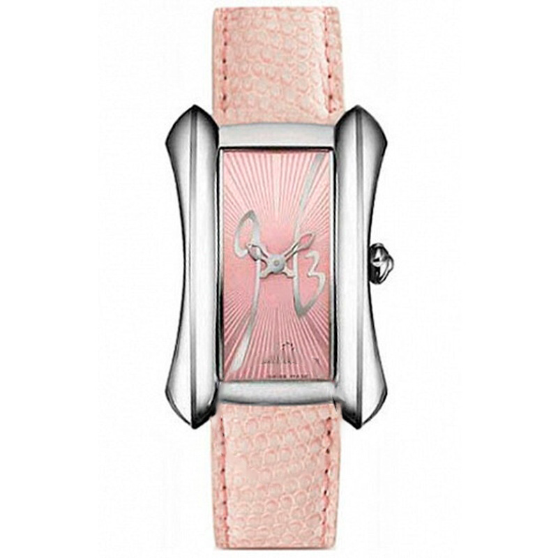 O mostrador prateado irradia com ponteiros dourados e marcadores de hora romanos, com diamantes (2.4 ct) adicionando glamour. O movimento de quartzo garante precisão, protegido por cristal de safira. O formato único é opulente.