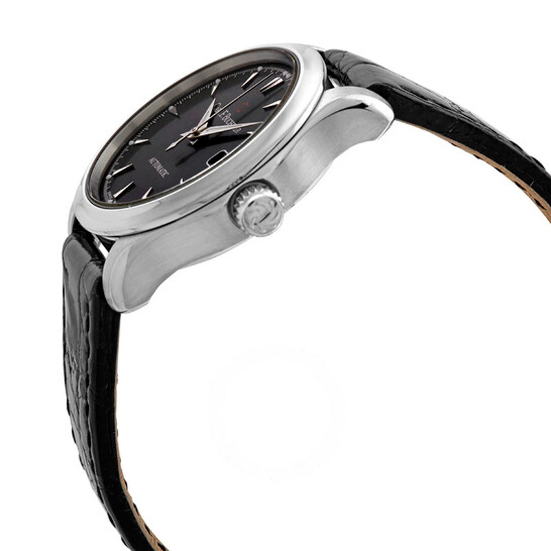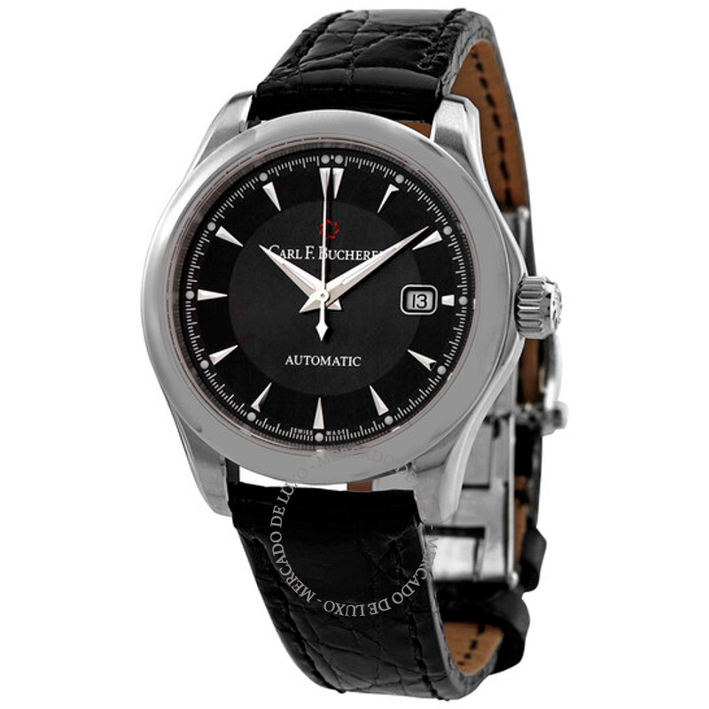 O mostrador preto irradia com ponteiros prateados luminosos e marcadores de hora índices, com data às 3 horas. O movimento automático CFB 1963, com 38 horas de reserva, é protegido por cristal de safira antirreflexo. O design é elegante.