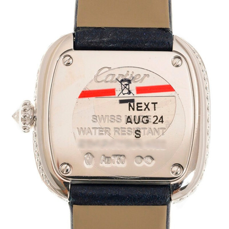 Cartier, a mestre em formas inovadoras, apresenta o Coussin De Cartier, um relógio quartzo de 27 mm em ouro branco 18kt com pulseira de couro azul, um design quadrado que evoca a suavidade de uma...