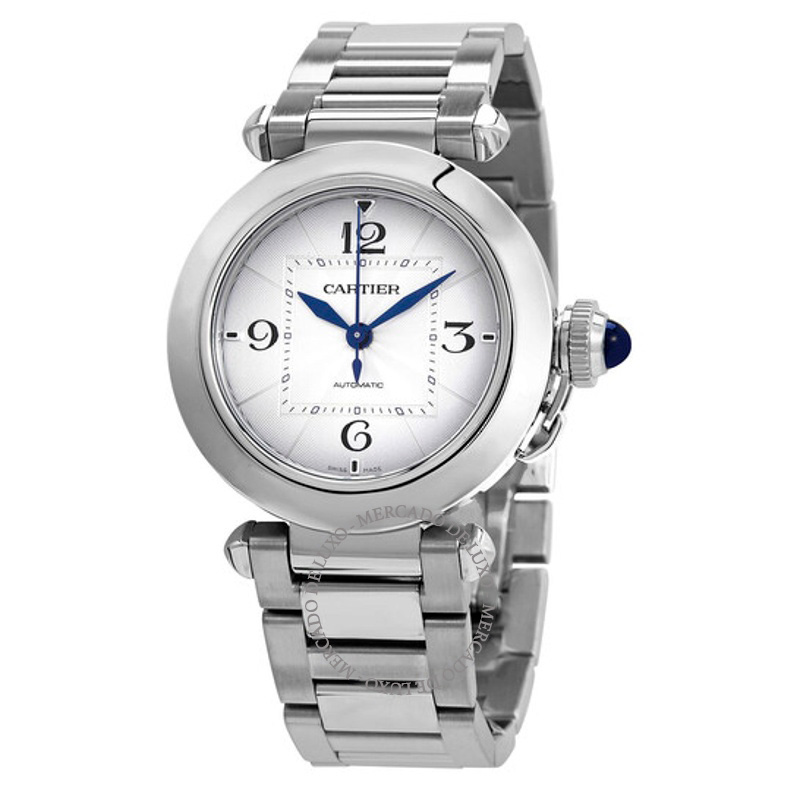 Cartier, a inovadora em relojoaria, apresenta o Pasha Automático, um relógio de 35 mm em aço inoxidável com pulseira de aço, um design redondo que evoca a robustez de um relógio de mergulho, inspirado no Pasha de Marrakesh desde 1985. Esta peça é uma declaração de luxo para a mulher que transforma seu pulso em uma obra de arte, como nas páginas das Revistas de Moda onde o Pasha adorna editoriais de alta moda.
