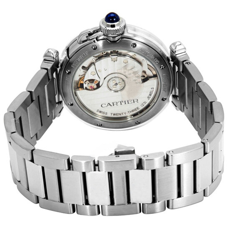 O mostrador prateado reluz com ponteiros azuis e marcadores índices/arábicos, criando um contraste clássico que destaca a funcionalidade. O movimento automático Cartier 1847 MC assegura precisão impecável, com reserva de 42 horas e 23 joias. Protegido por cristal de safira resistente a riscos, este relógio é uma joia resistente para a vida glamorosa.