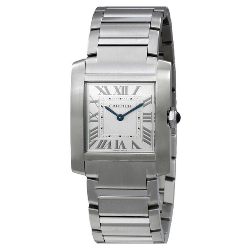 Cartier, a rainha da relojoaria francesa, apresenta o Tank Française Médio, um relógio de 27 mm em aço inoxidável com pulseira de aço, um design retangular que evoca a elegância parisiense dos anos...