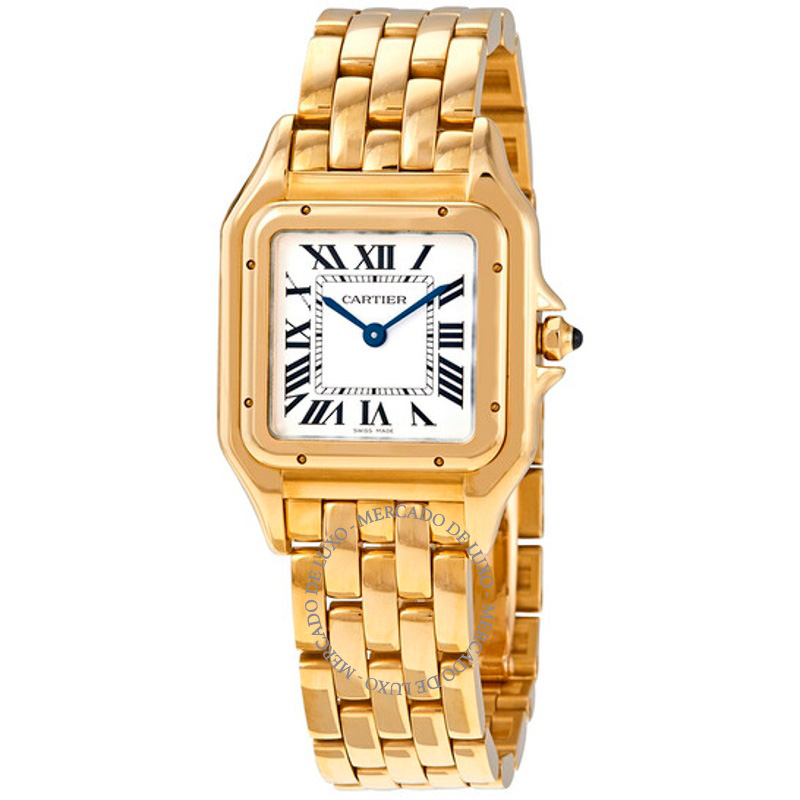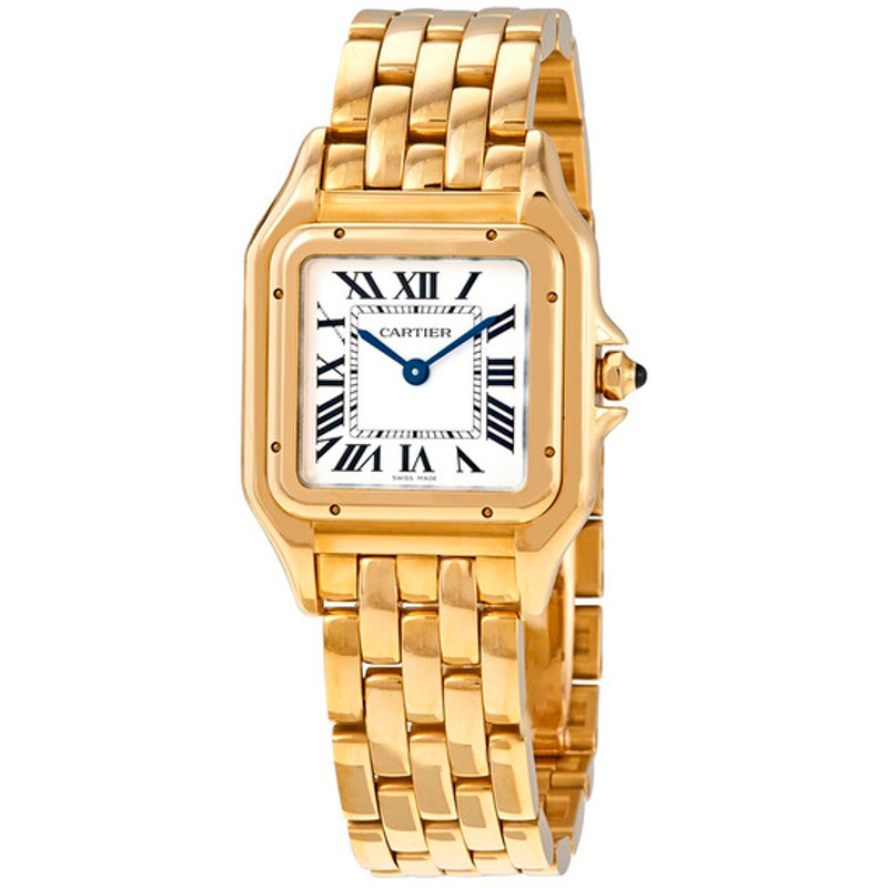 A Cartier, musa da relojoaria, apresenta o Panthère de Cartier, um relógio quartzo de 27 mm x 37 mm em ouro amarelo 18kt com pulseira de ouro amarelo, um design quadrado que evoca a graça feroz da...