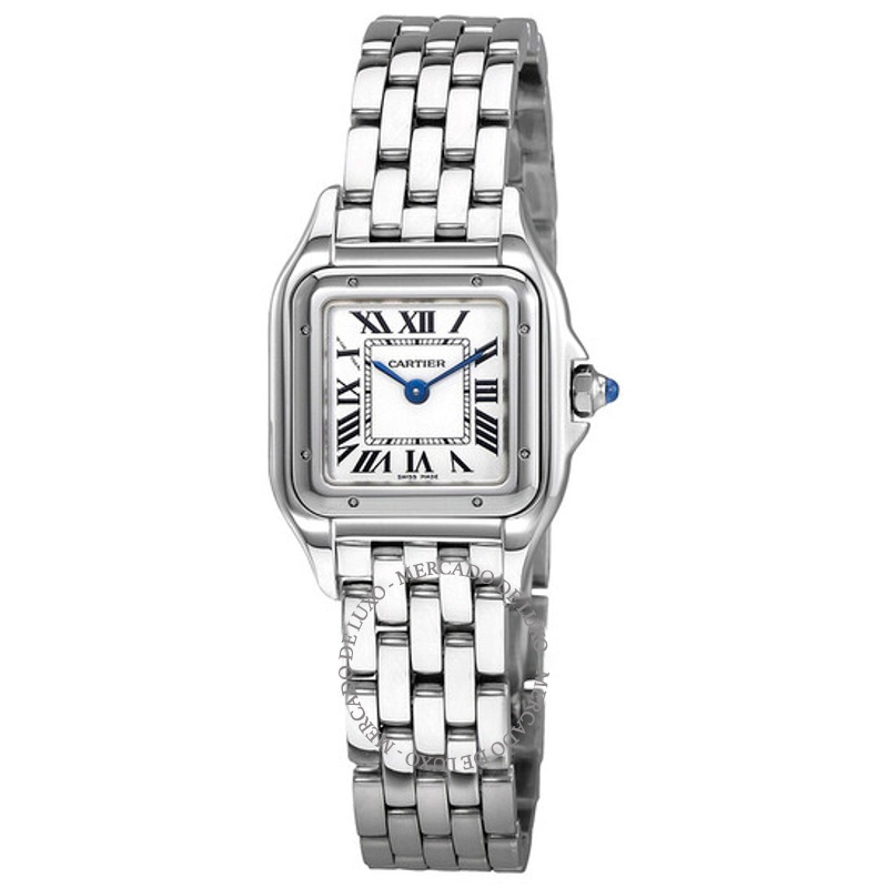A Cartier, musa da relojoaria, apresenta o Panthère de Cartier, um relógio quartzo de 23 mm x 30 mm em aço inoxidável com pulseira de aço, um design quadrado que evoca a graça feroz da pantera,...