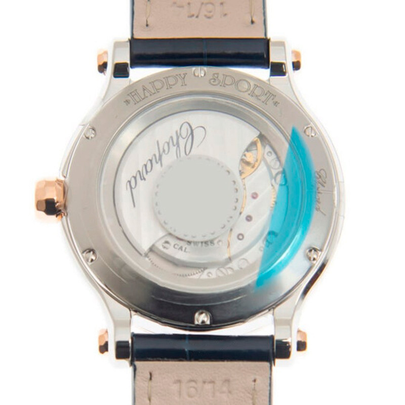 O Happy Sport da Chopard é uma celebração da alegria de viver, combinando a ousadia de um relógio esportivo com a sofisticação de diamantes flutuantes. Este modelo de 33 mm em aço inoxidável, com uma pulseira de couro azul, apresenta um mostrador prateado adornado com diamantes flutuantes que dançam livremente entre cristais de safira, criando um espetáculo visual único. A caixa polida, com seu aro fixo em ouro rosa 18 quilates, reflete a luz com um brilho etéreo, tornando esta peça perfeita para ocasiões especiais ou para o uso diário com um toque de glamour.