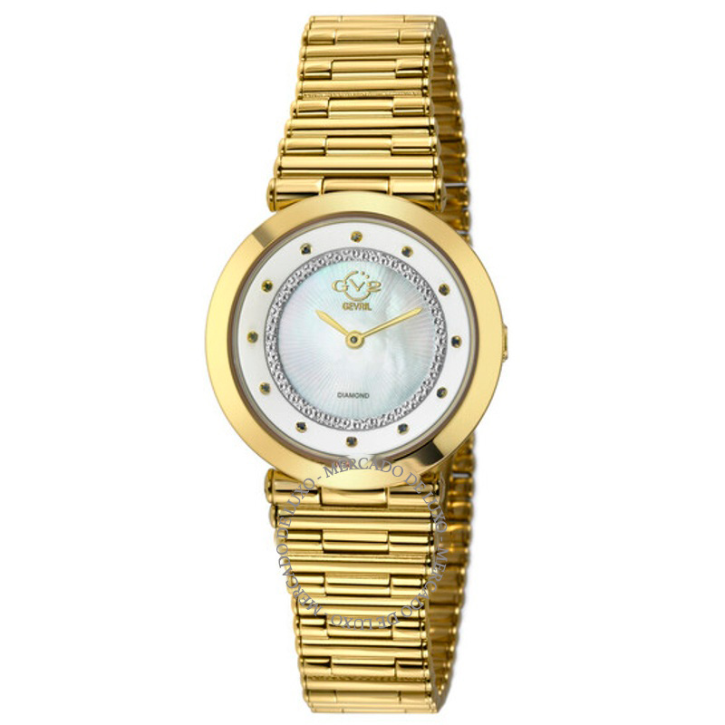 O Gv2 By Gevril Mostrador de quartzo madrepérola Burano 34 mm revela um estudo de superfícies que alternam brilho e sobriedade. Com caixa em aço inoxidável, amarelo, mostrador madrepérola, 34 mm, o...