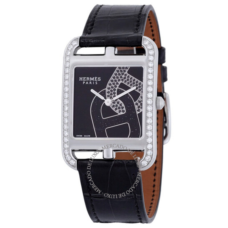 O Hermès Cape Cod Quartz Mostrador Preto 29 mm leva o selo da maison com um acabamento que fala baixo, mas fala muito. mostrador preto, 29 mm. Acabamentos precisos revelam a experiência do ateliê em cada aresta.