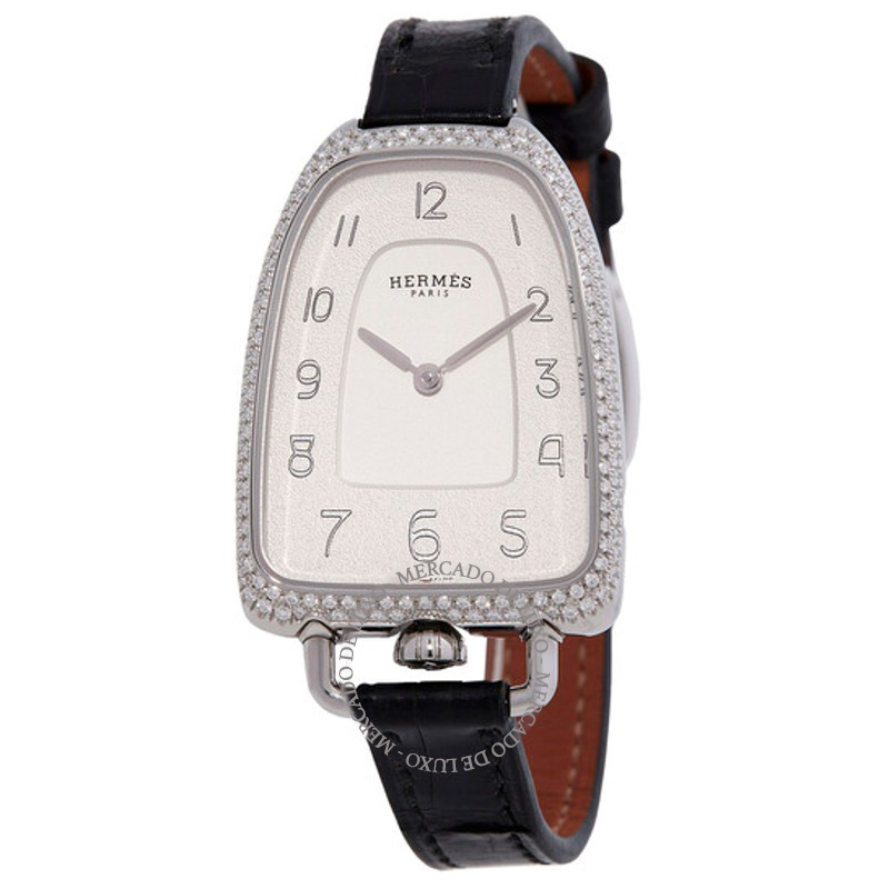 O Hermès Galop Quartzo Médio com Mostrador Prateado e 26 mm apresenta proporções serenas e uma leitura de tempo que privilegia o essencial. mostrador prateado com, 26 mm. Acabamentos precisos revelam a experiência do ateliê em cada aresta.