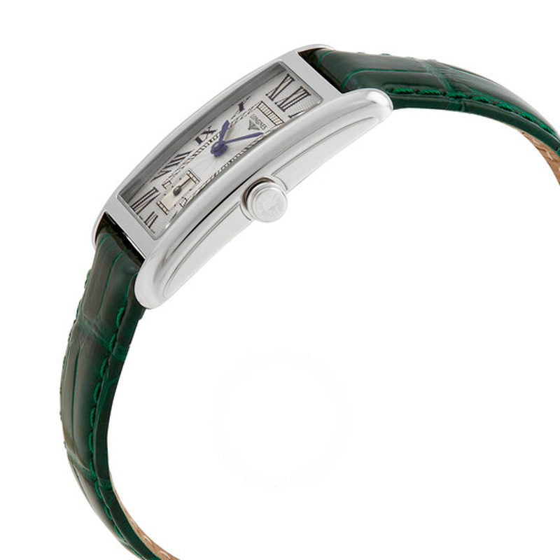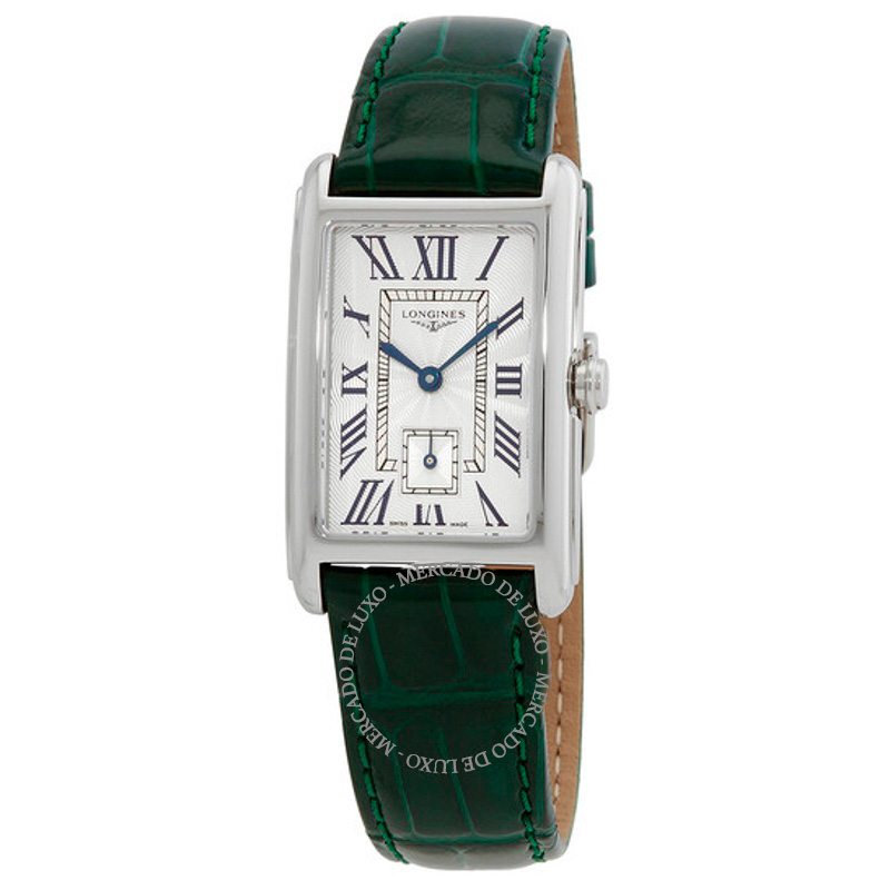 O Longines DolceVita Quartzo Mostrador Prata 23 mm é um estudo de volumes e reflexos: caixa esculpida, arestas suaves, presença contida. 23 mm. Acabamentos precisos revelam a experiência do ateliê em cada aresta.