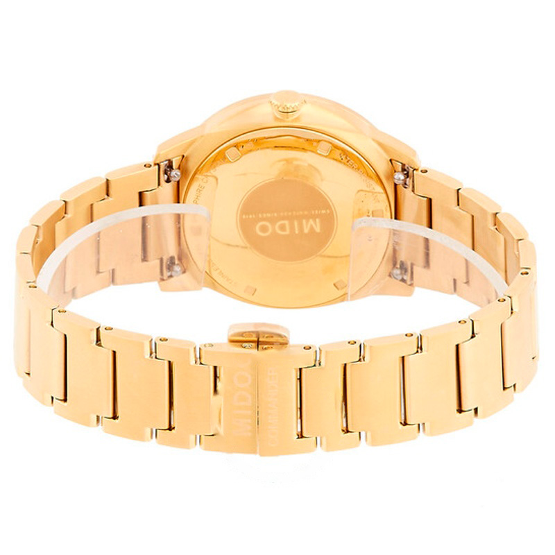 O Mido Commander Lady Automático Mostrador Preto 35 mm traz design de linhas limpas e presença silenciosa — o luxo que não precisa anunciar-se. caixa em aço inoxidável, amarelo, mostrador preto, 35 mm. Texturas bem resolvidas falam de precisão e cuidado à mão.