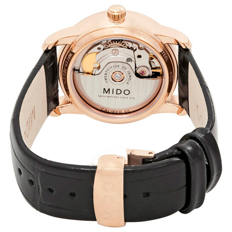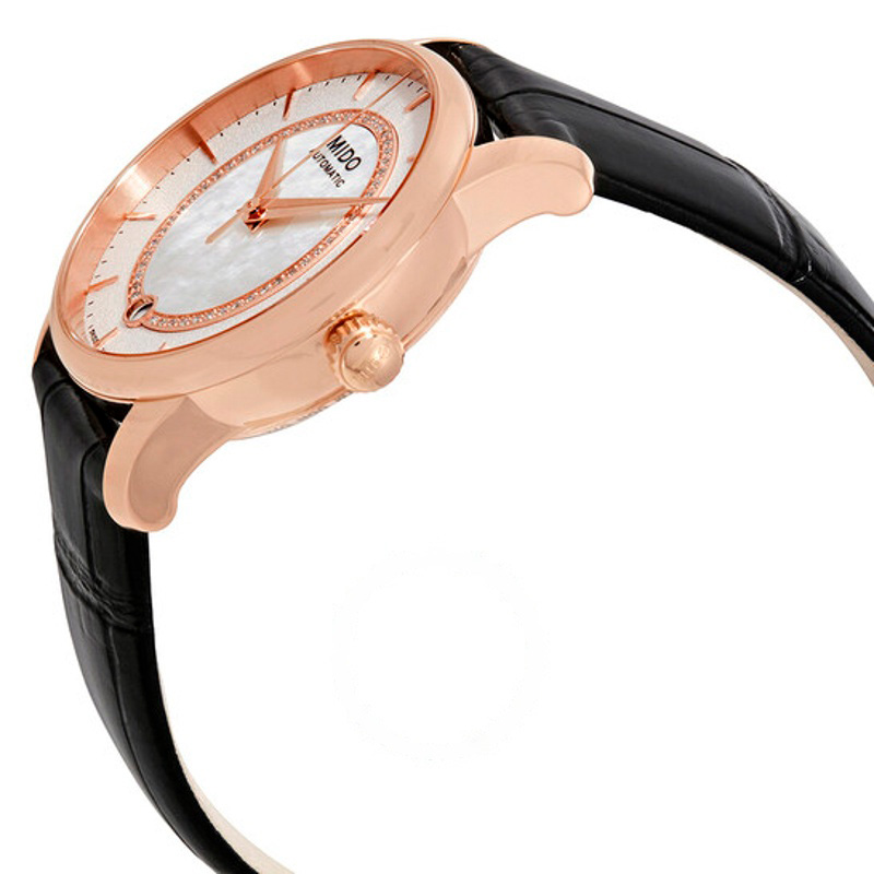 O Mido Baroncelli Prisma Automático 33 mm equilibra superfícies polidas e escovadas para um jogo de luz refinado. caixa em aço inoxidável, rosa, luneta cravejada de, mostrador preto com, 33 mm. Texturas bem resolvidas falam de precisão e cuidado à mão.