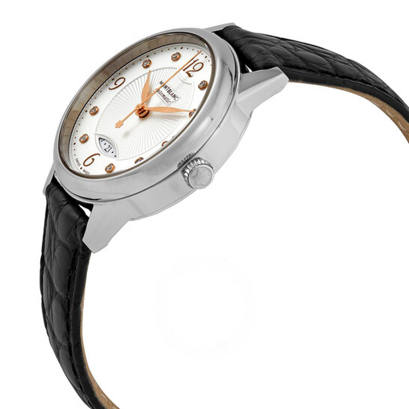 O Montblanc Boheme Automático Diamante Mostrador Branco 30 mm eleva códigos da casa com leitura contemporânea e ergonomia exemplar. caixa em aço inoxidável, rosa, luneta cravejada de, mostrador preto...
