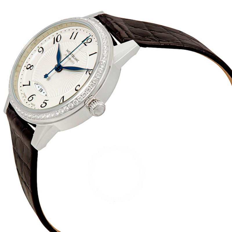 O Montblanc Boheme Date 30 mm Automático Mostrador Branco 30 mm combina proporções clássicas a detalhes de atelier que fazem a diferença no pulso. caixa em aço inoxidável, luneta cravejada de, mostrador azul com, 30 mm. Texturas bem resolvidas falam de precisão e cuidado à mão.