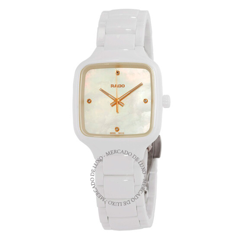 O Rado Mostrador em madrepérola branca com diamante de quartzo verdadeiro 29 mm faz do tempo um detalhe de estilo — sob medida para a vida real. mostrador madrepérola com, 29 mm. Acabamentos de alto padrão evidenciam o trabalho de bancada.