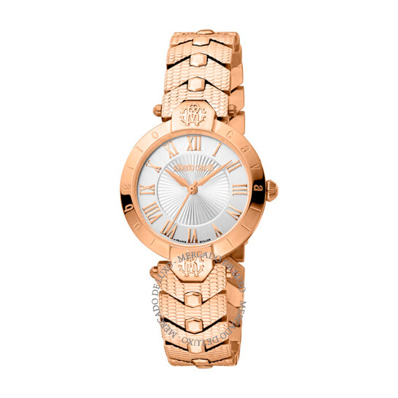 O Roberto Cavalli de moda quartzo mostrador prateado 30 mm equilibra herança e desenho contemporâneo em proporções muito bem resolvidas. mostrador prateado, 30 mm. Os acabamentos revelam cuidado de atelier e respeito à matéria.