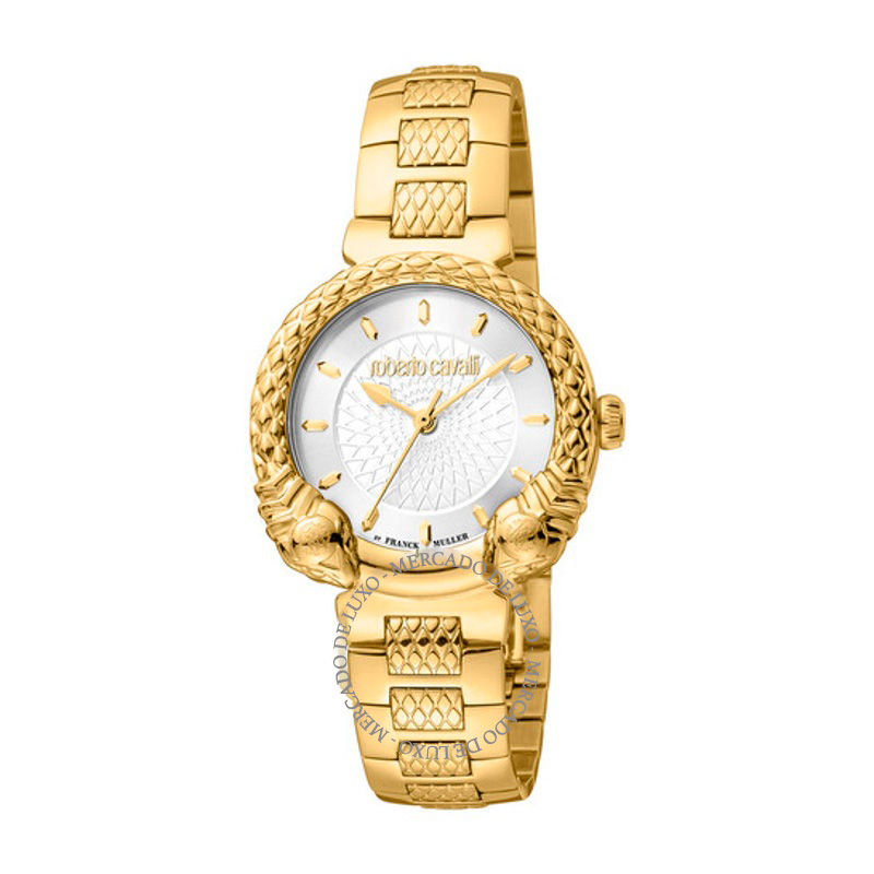 O Roberto Cavalli de moda quartzo mostrador prateado 32 mm equilibra herança e desenho contemporâneo em proporções muito bem resolvidas. mostrador prateado, 32 mm. Os acabamentos revelam cuidado de atelier e respeito à matéria.
