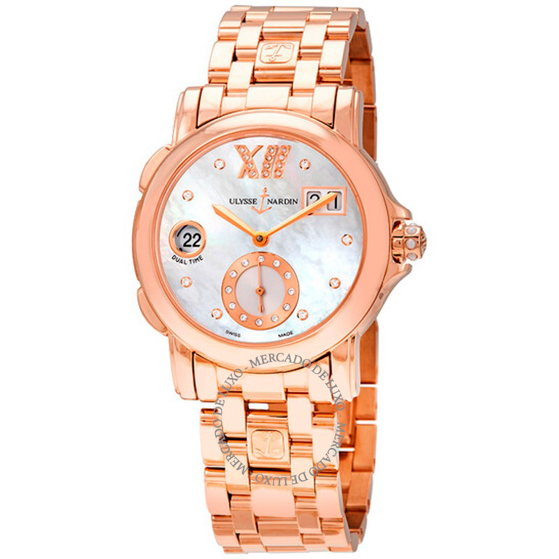 O Ulysse Nardin GMT Dual Time Madrepérola Mostrador Ouro Rosa 18k Polido Automático 37 mm revela a linguagem da alta relojoaria com proporções harmônicas e acabamento minucioso. Com caixa em ouro...