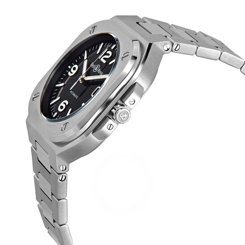 O Bell & Ross BR 05 Automático Mostrador Preto 40 mm Traz uma leitura arquitetônica do tempo com superfícies bem trabalhadas. Caixa em aço inoxidável, Mostrador preto, 40 mm.