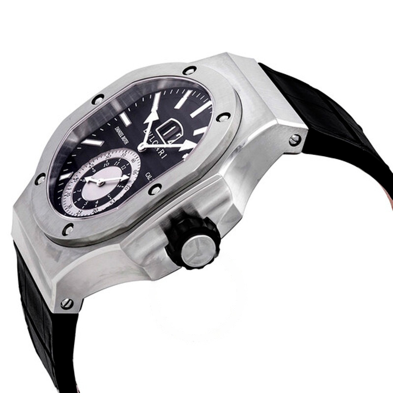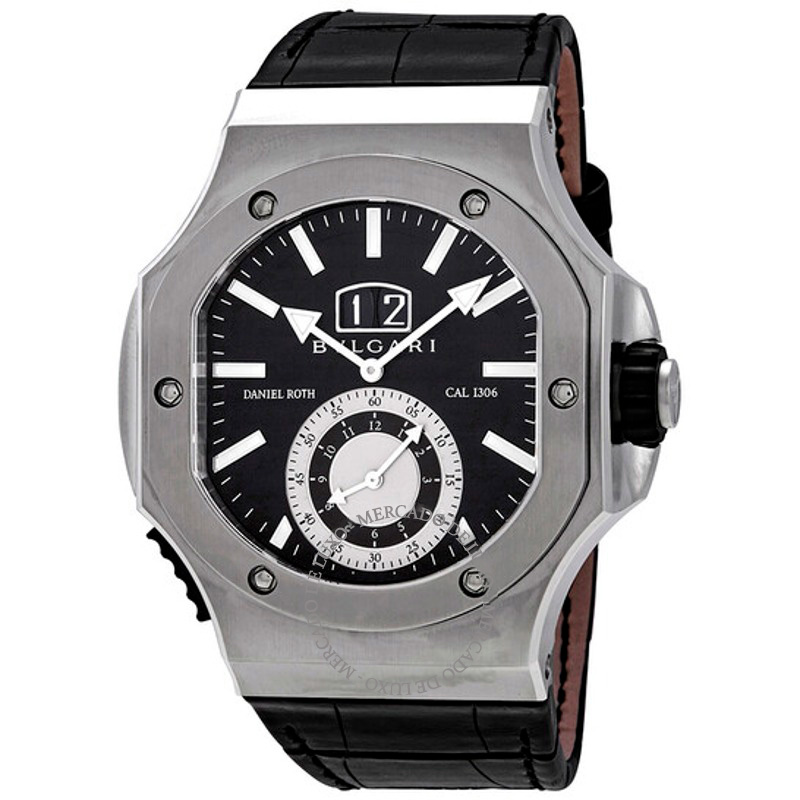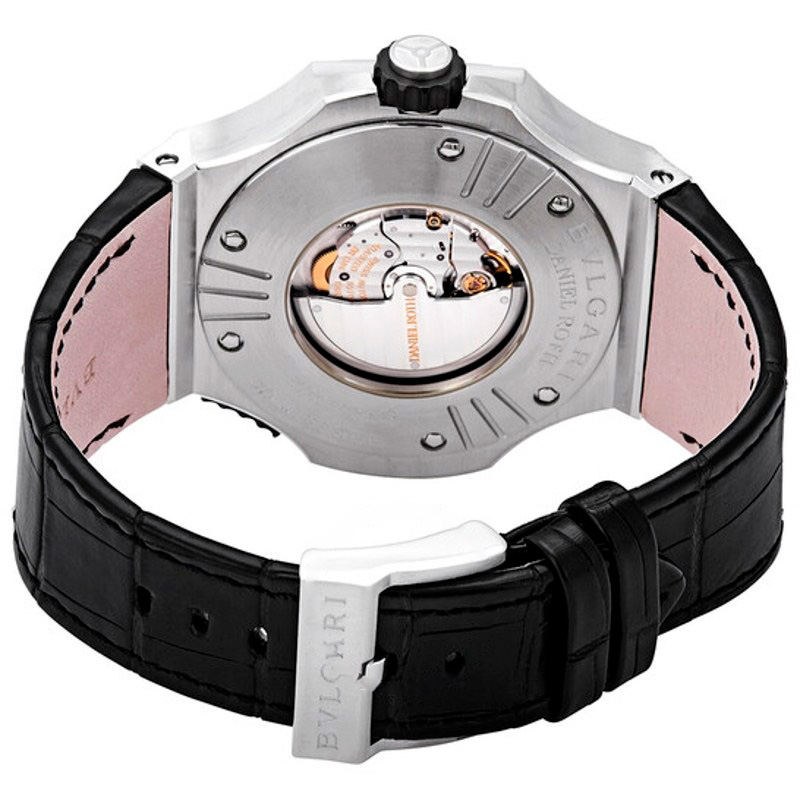 A pulseira de couro de crocodilo preto, com fecho de fivela, oferece um toque de refinamento tátil, complementando a robustez da caixa. Equipado com o Calibre DR 1306 automático, com uma reserva de marcha de 45 horas, este relógio entrega precisão excepcional, refletindo a maestria da Bvlgari na relojoaria suíça. O fundo transparente da caixa revela o movimento, uma vitrine da arte relojoeira que cativa colecionadores.