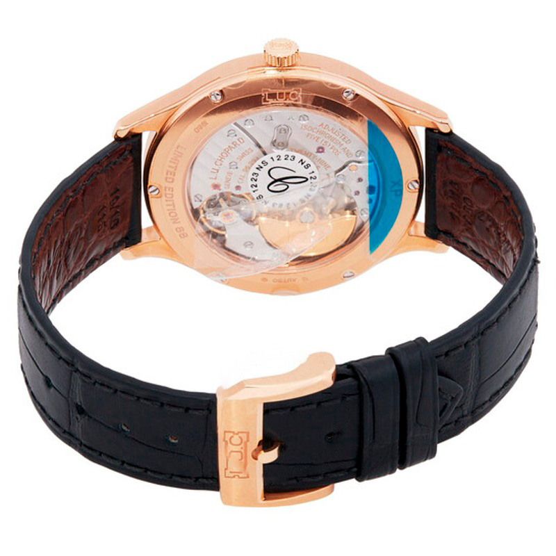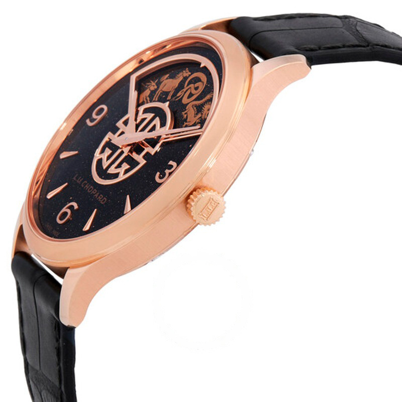 O mostrador preto, com marcadores de horas em índices e algarismos arábicos, reflete a precisão suíça do calibre Chopard L.U.C 96.29-L automático, com uma reserva de marcha de 65 horas e um submostrador de zodíaco animal. Inspirado na coleção L.U.C, que celebra a excelência relojoeira da Chopard, fundada em 1860, este relógio é uma celebração da precisão e do luxo, ideal para o homem moderno que aprecia a arte da relojoaria.