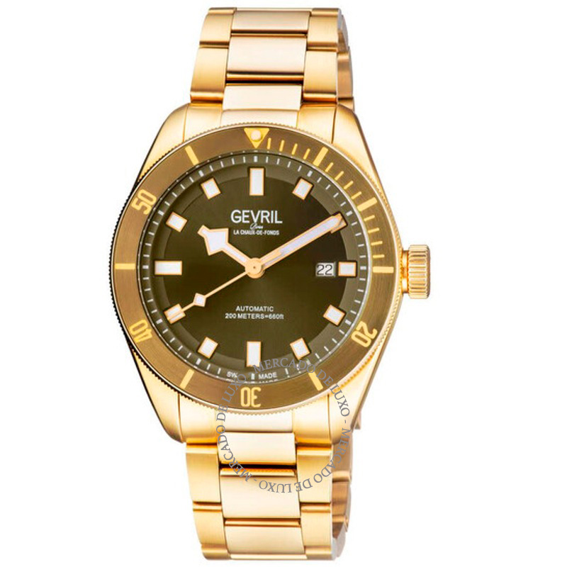 O Gevril Yorkville Automático Mostrador Verde Equilibra herança e desenho atual em proporções bem resolvidas. Mostrador verde.