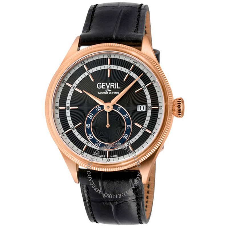 O Gevril Empire Automático Mostrador Preto 40 mm Equilibra herança e desenho atual em proporções bem resolvidas. Caixa em aço inoxidável, rosa, Mostrador preto, 40 mm.A manufatura calibra o movimento...