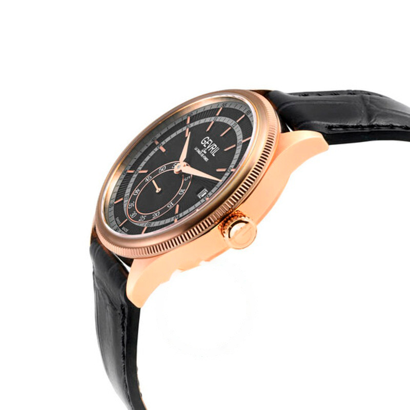 O Gevril Empire Automático Mostrador Preto 40 mm Equilibra herança e desenho atual em proporções bem resolvidas. Caixa em aço inoxidável, rosa, Mostrador preto, 40 mm.