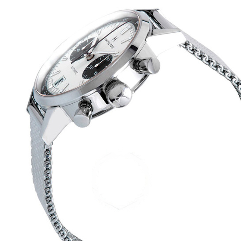 O Hamilton Watch Cronógrafo American Classicouro Automático Mostrador Branco 40 mm Aposta em linhas limpas e volume preciso — luxo que não grita. Caixa em aço inoxidável, Mostrador preto, 40 mm.No...