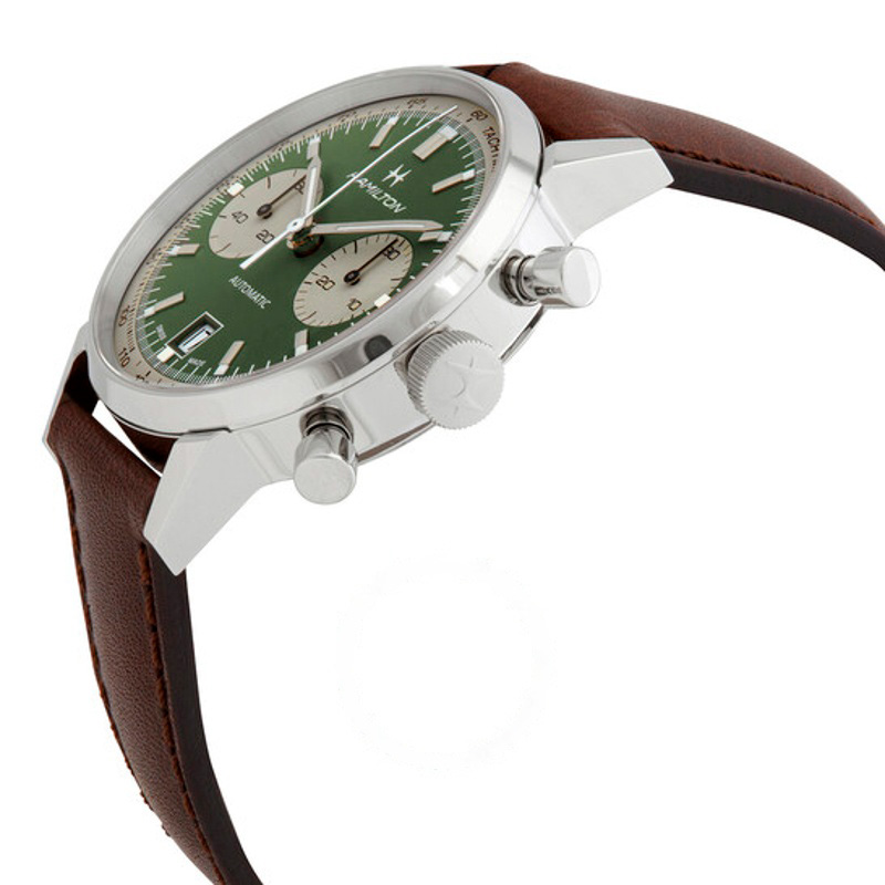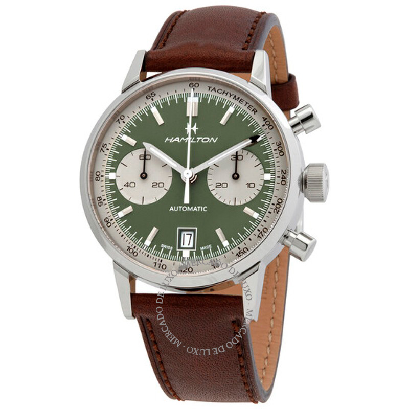 O Hamilton Watch Cronógrafo Intra-Maticouro Automático Mostrador Verde 40 mm Sintetiza elegância, conforto e um toque de vanguarda. Caixa em aço inoxidável, Mostrador prateado, 40 mm.