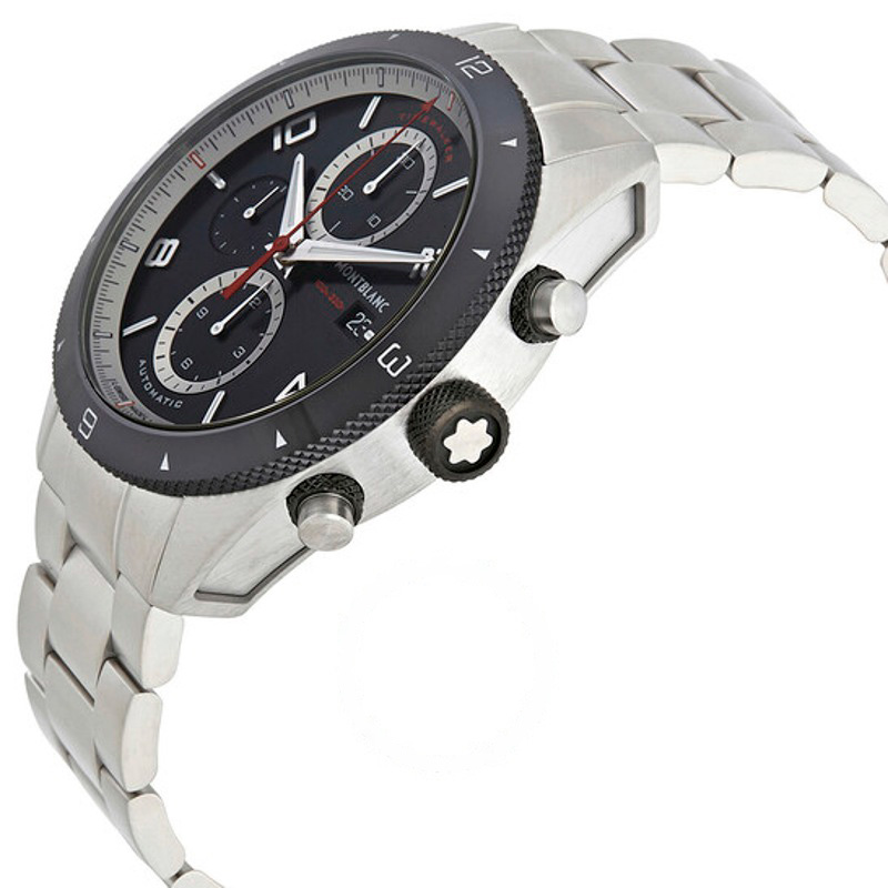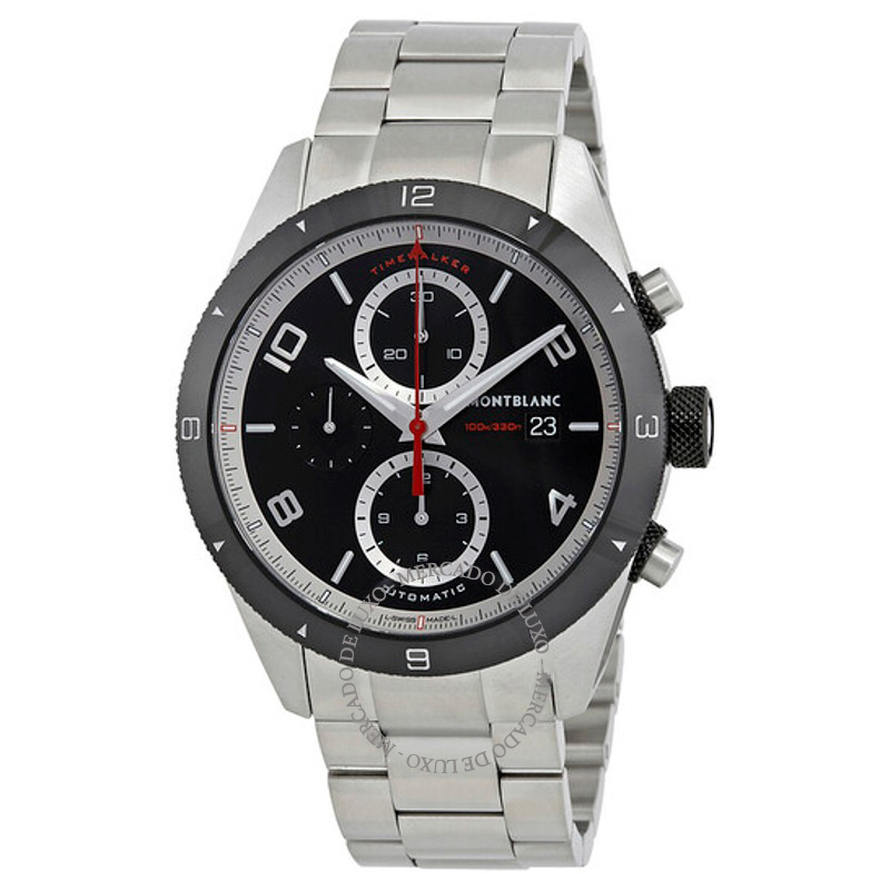 O Montblanc TimeWalker Cronógrafo Automático Mostrador Preto 43 mm Equilibra herança e desenho atual em proporções bem resolvidas. Caixa em aço inoxidável, cerâmica, Luneta cerâmica, Mostrador preto, 43 mm.