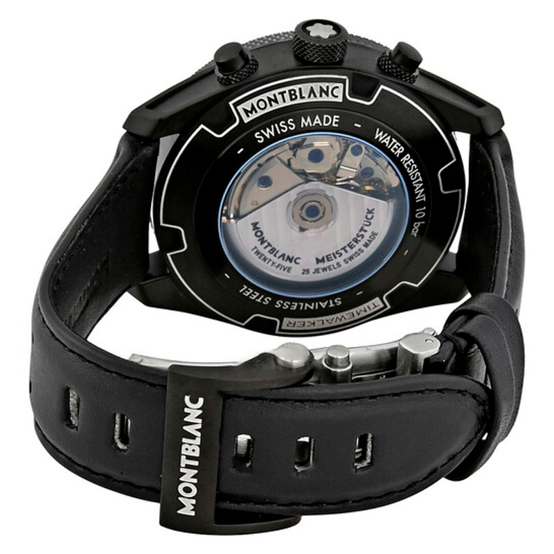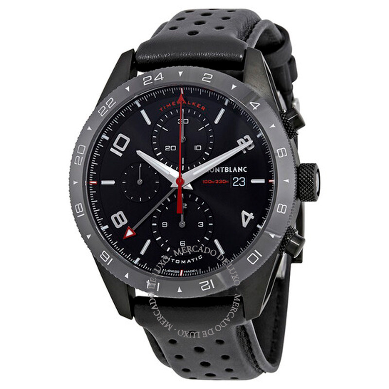 O Montblanc TimeWalker Cronógrafo Automático Mostrador Preto Interpreta os códigos da casa com serenidade e atenção à luz. Mostrador preto.Tecnologia e artesanato se encontram numa construção...