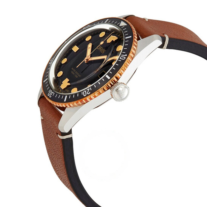 O Oris Divers Sixty-Five Automático Mostrador Preto 42 mm Interpreta os códigos da casa com serenidade e atenção à luz. Caixa em aço inoxidável, Mostrador preto, 42 mm.