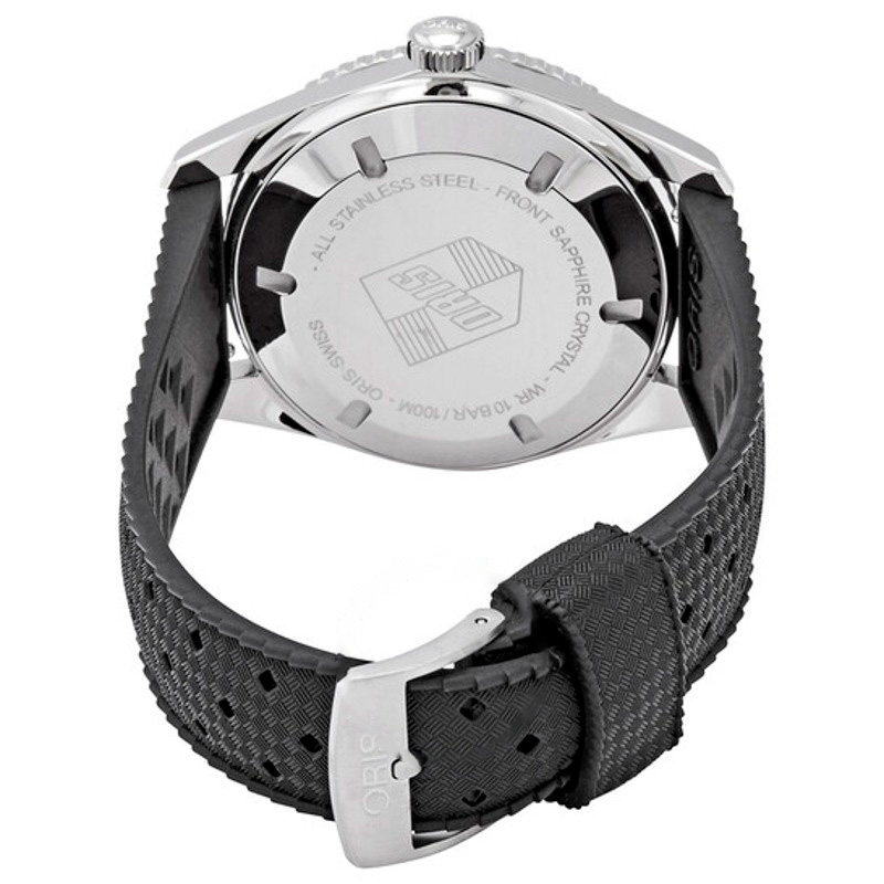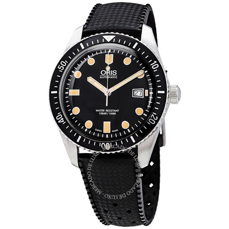 O Oris Divers Sixty-Five Mostrador Preto 42 mm Traz uma leitura arquitetônica do tempo com superfícies bem trabalhadas. Caixa em aço inoxidável, Mostrador preto, 42 mm.