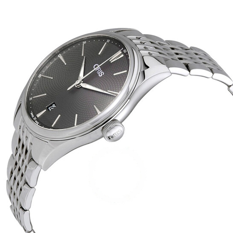 O Oris Artelier Automático Mostrador Cinza 40 mm Traz uma leitura arquitetônica do tempo com superfícies bem trabalhadas. Caixa em aço inoxidável, Luneta lisa, Mostrador prateado, 40 mm.