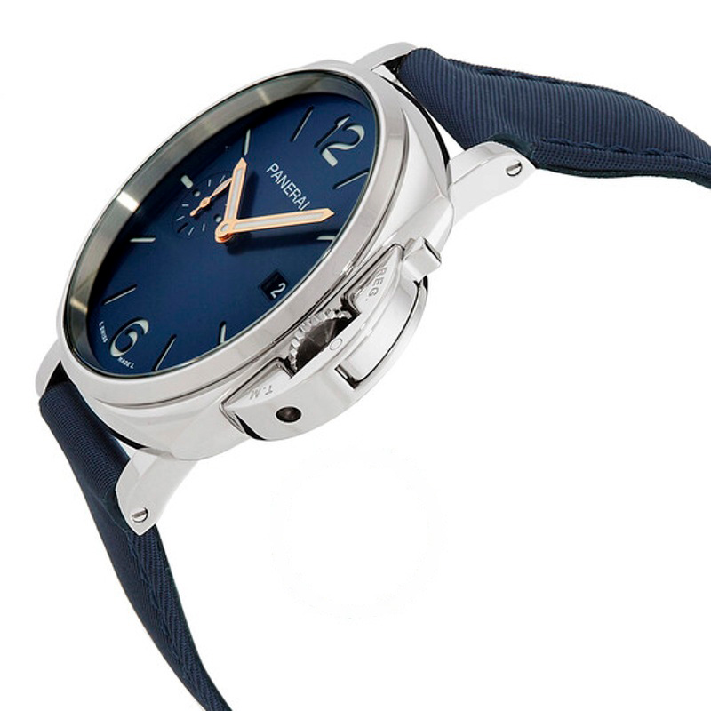 O Panerai Luminor Due 42mm Prada Re-Nylon Automático Mostrador Azul 42 mm Sintetiza elegância, conforto e um toque de vanguarda. Caixa em aço inoxidável, rosa, Mostrador azul, 42 mm.