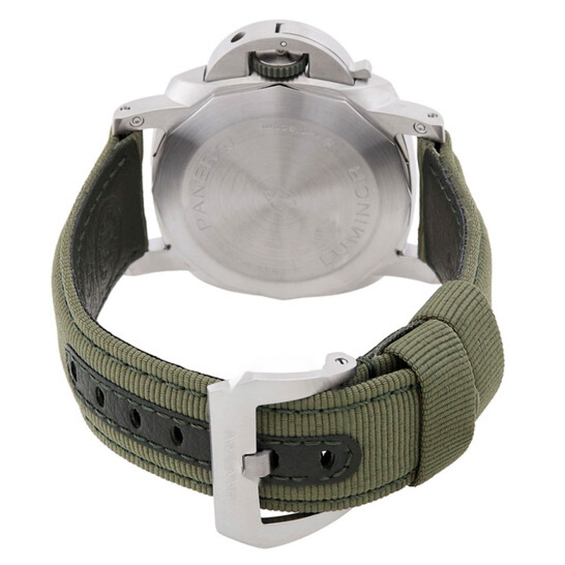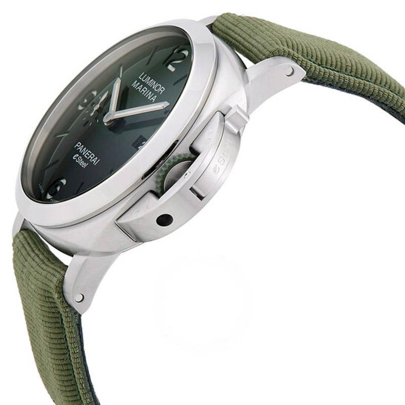O Panerai Luminor Marina Verde Smeraldo Mostrador Verde Automático 44 mm Equilibra herança e desenho atual em proporções bem resolvidas. Caixa em aço inoxidável, Mostrador prateado, 44 mm.