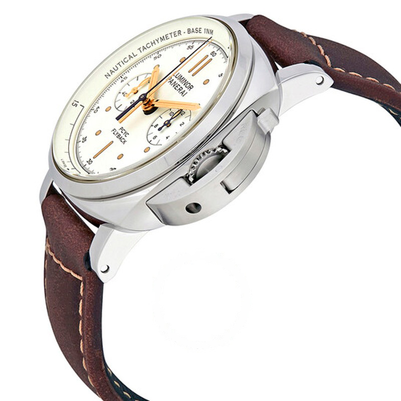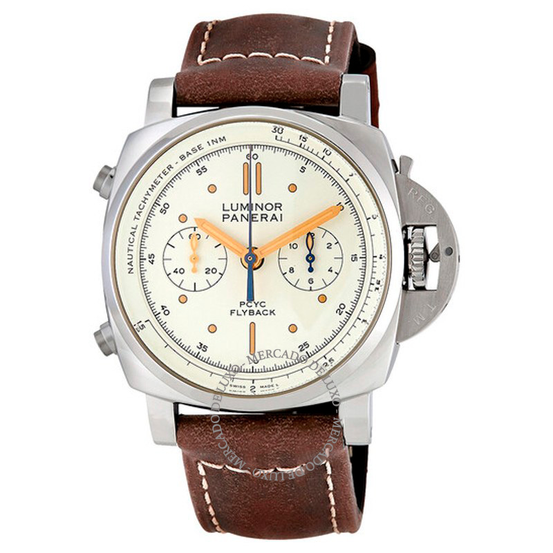O Panerai Luminor 1950 Ivory Flyback Cronógrafo Automático 44 mm Sintetiza elegância, conforto e um toque de vanguarda. Caixa em aço inoxidável, Mostrador champagne, 44 mm.