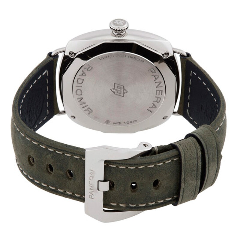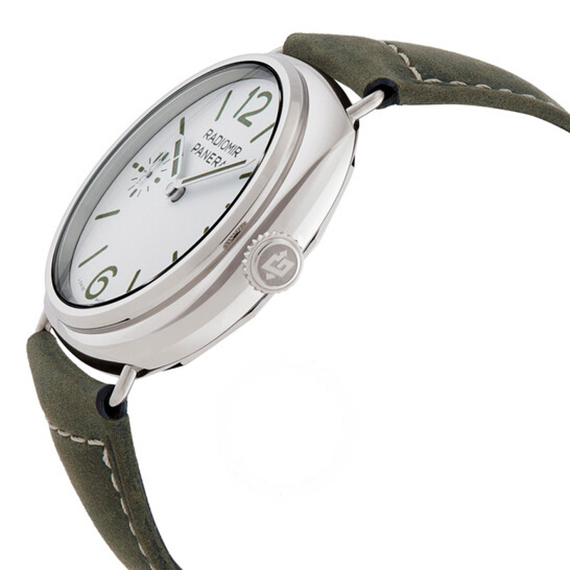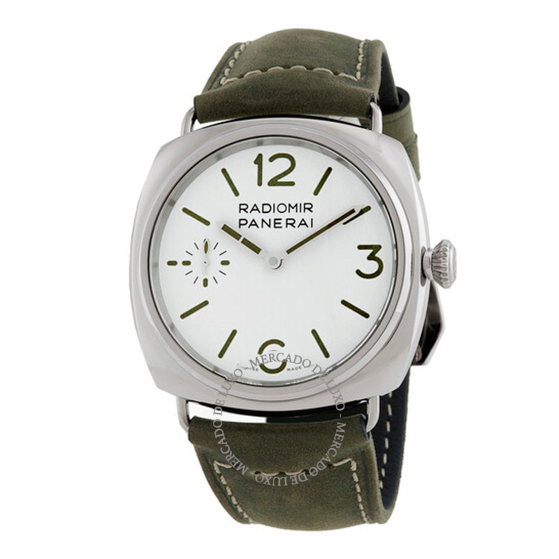 O Panerai Radiomir Officine 45 mm Corda Manual Mostrador Branco 45 mm Traz uma leitura arquitetônica do tempo com superfícies bem trabalhadas. Caixa em aço inoxidável, Mostrador prateado, 45 mm.