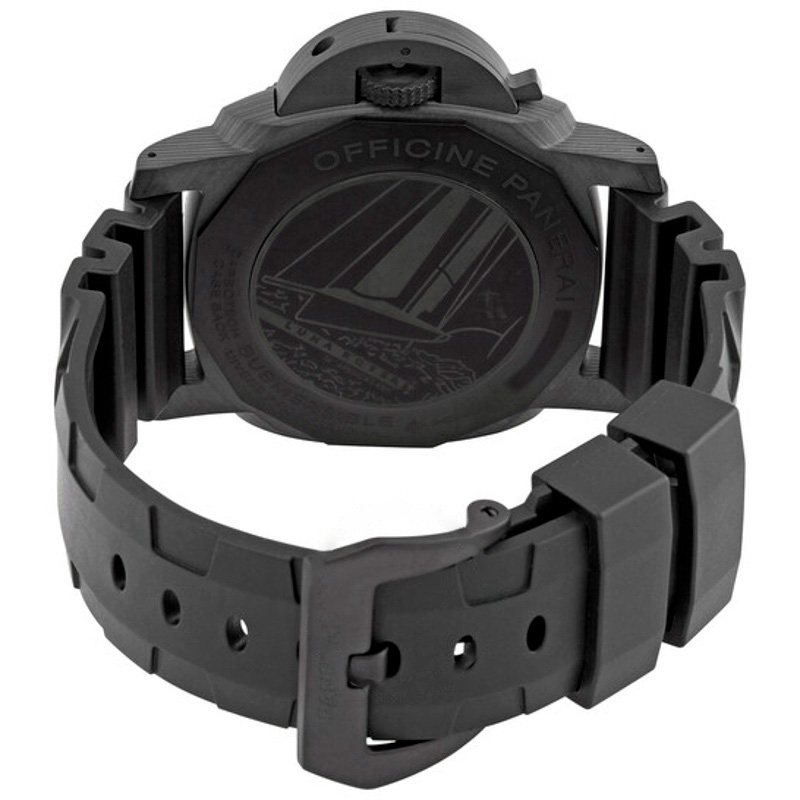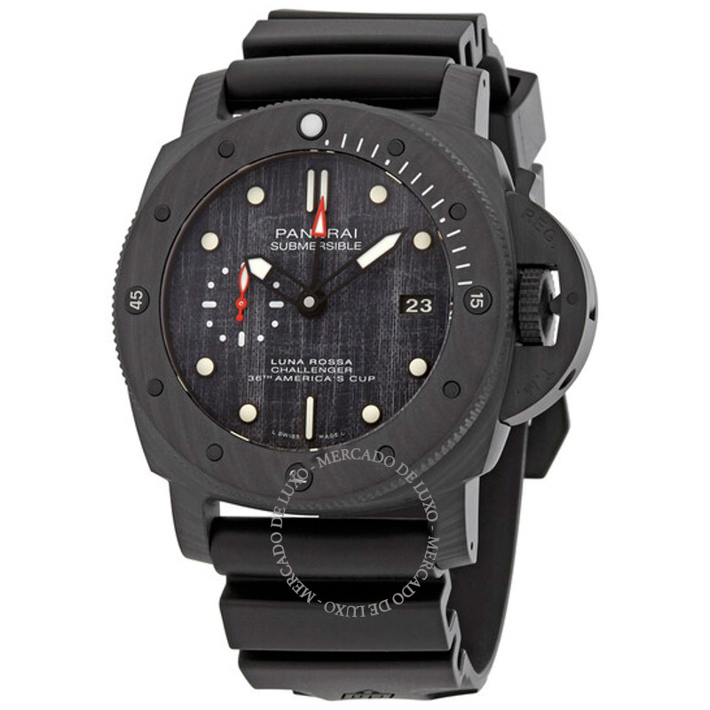 O Panerai Submersível Carbotech Luna Rossa Automático 47 mm Aposta em linhas limpas e volume preciso — luxo que não grita. Caixa em titânio, Mostrador preto, 47 mm.
