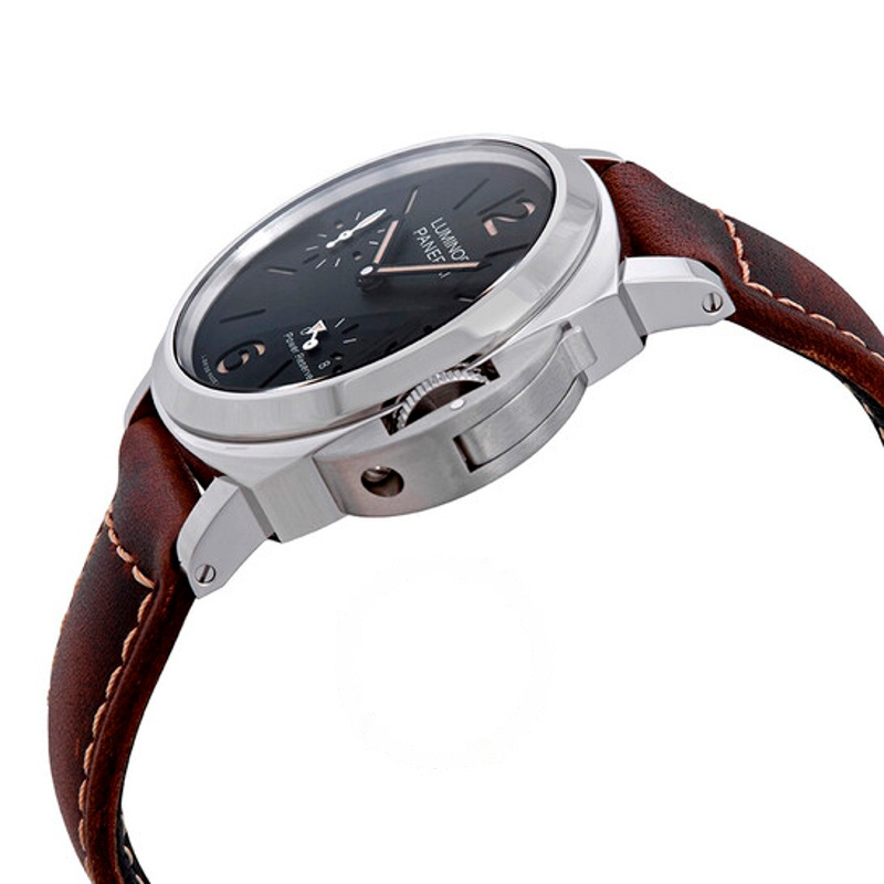 O Panerai Luminor 8 dias de reserva de energia corda manual 44 mm Equilibra herança e desenho atual em proporções bem resolvidas. Caixa em aço inoxidável, Mostrador preto, 44 mm.