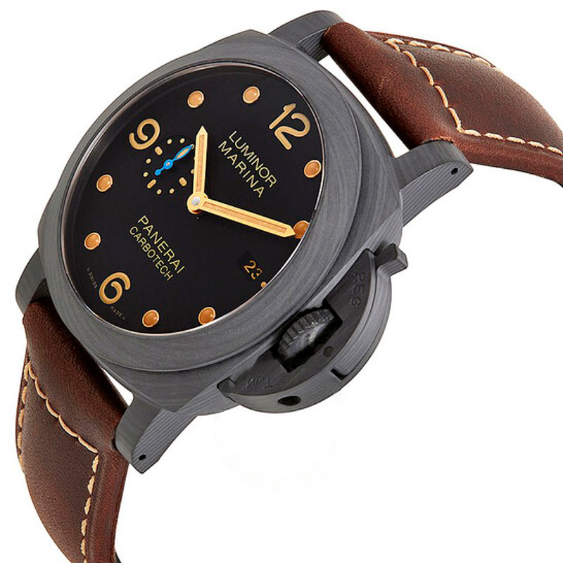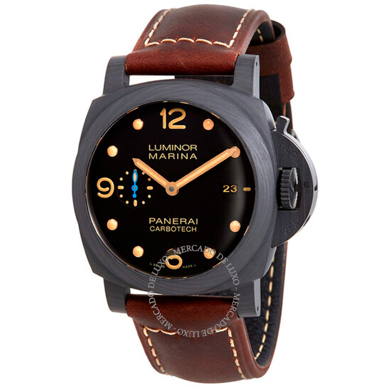 O Panerai Luminor 1950 44 Marina P9010 Automático 44 mm Equilibra herança e desenho atual em proporções bem resolvidas. Mostrador preto, 44 mm.
