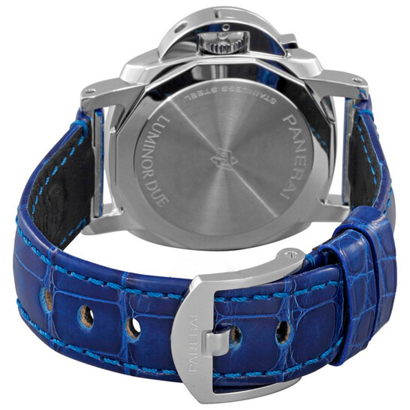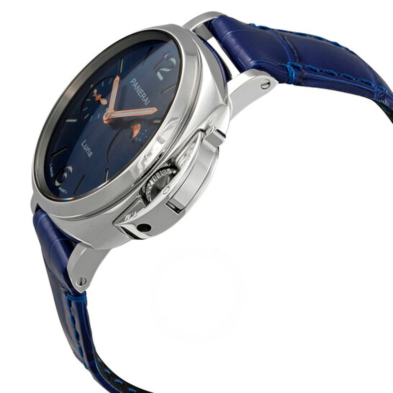 O Panerai Luminor Due Luna Automático Mostrador Azul 38 mm Aposta em linhas limpas e volume preciso — luxo que não grita. Caixa em aço inoxidável, rosa, Mostrador azul, 38 mm.