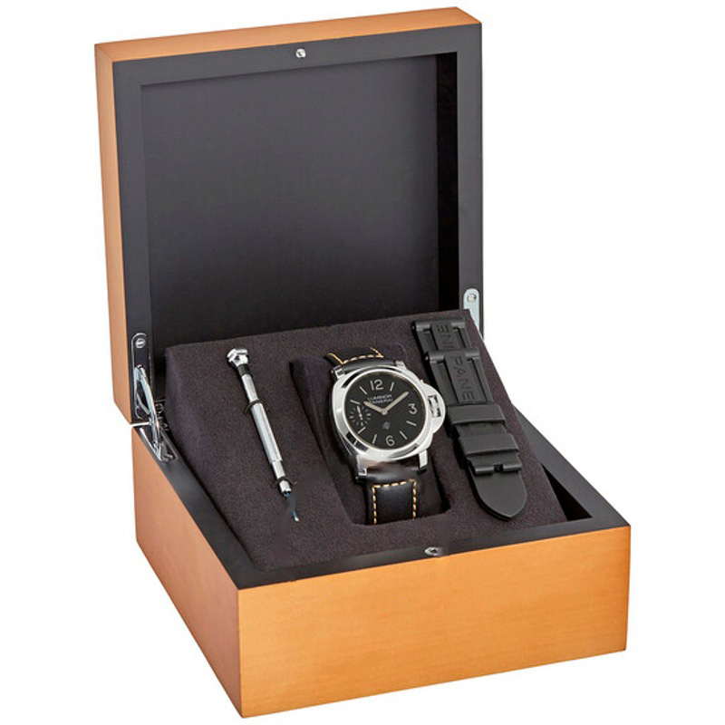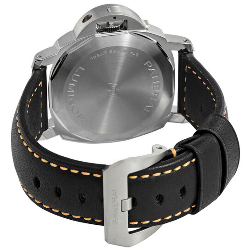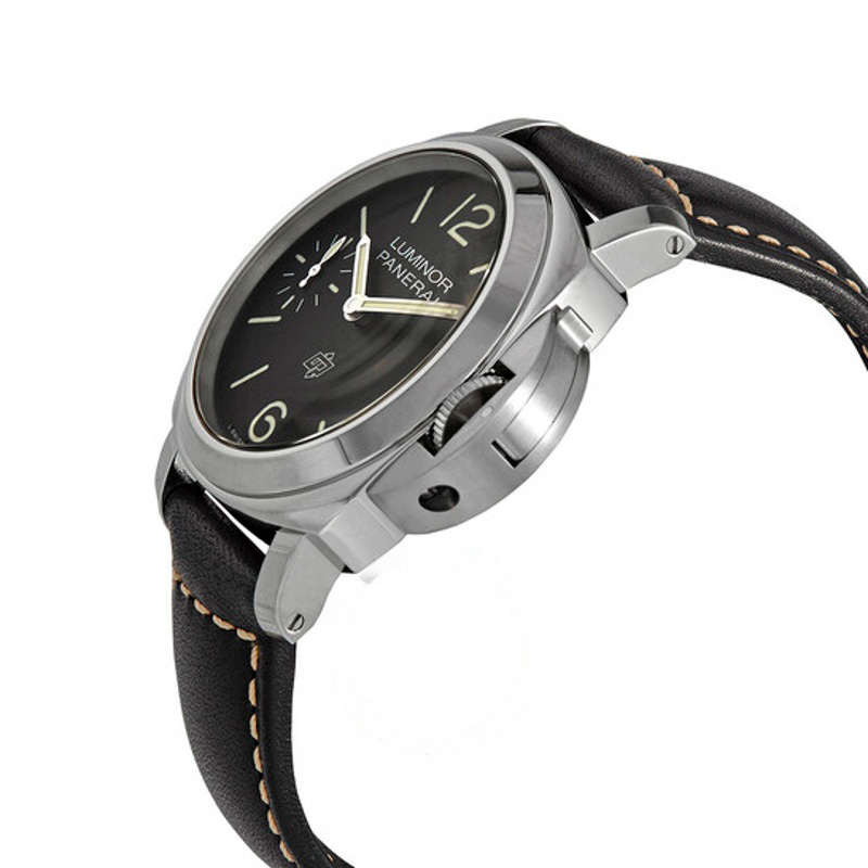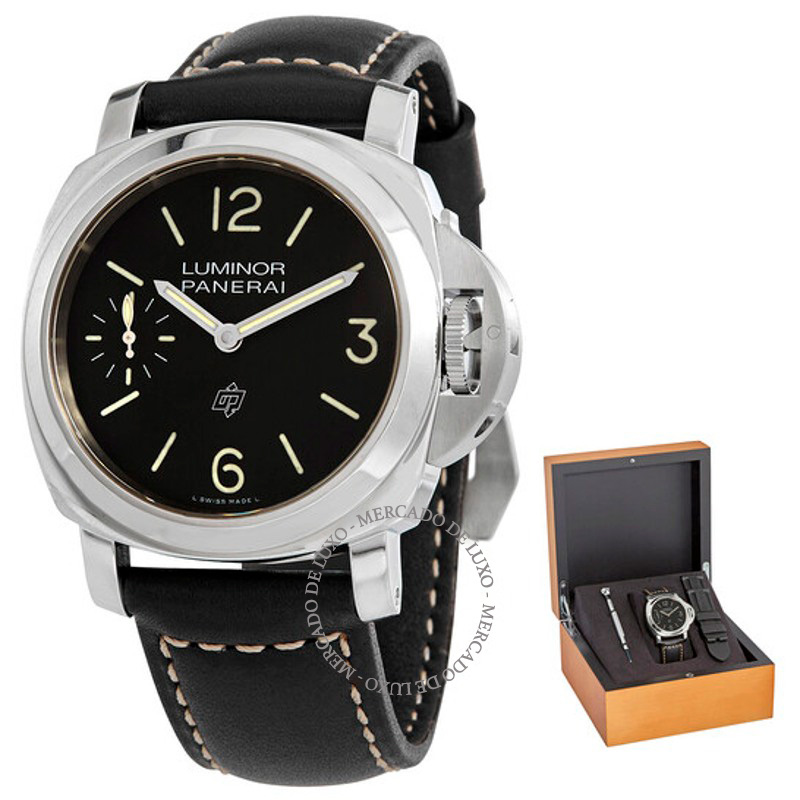 O Panerai Luminor Logo Corda Manual Mostrador Preto 44 mm Traz uma leitura arquitetônica do tempo com superfícies bem trabalhadas. Caixa em aço inoxidável, Mostrador preto, 44 mm.