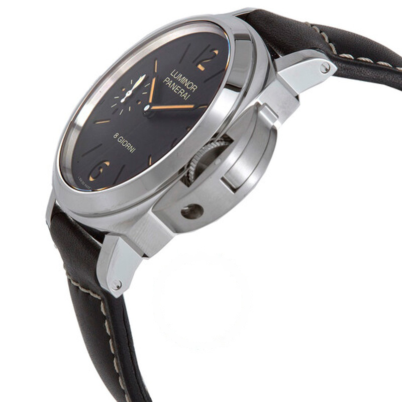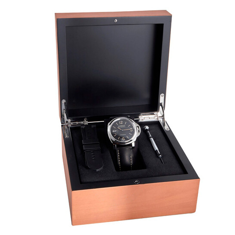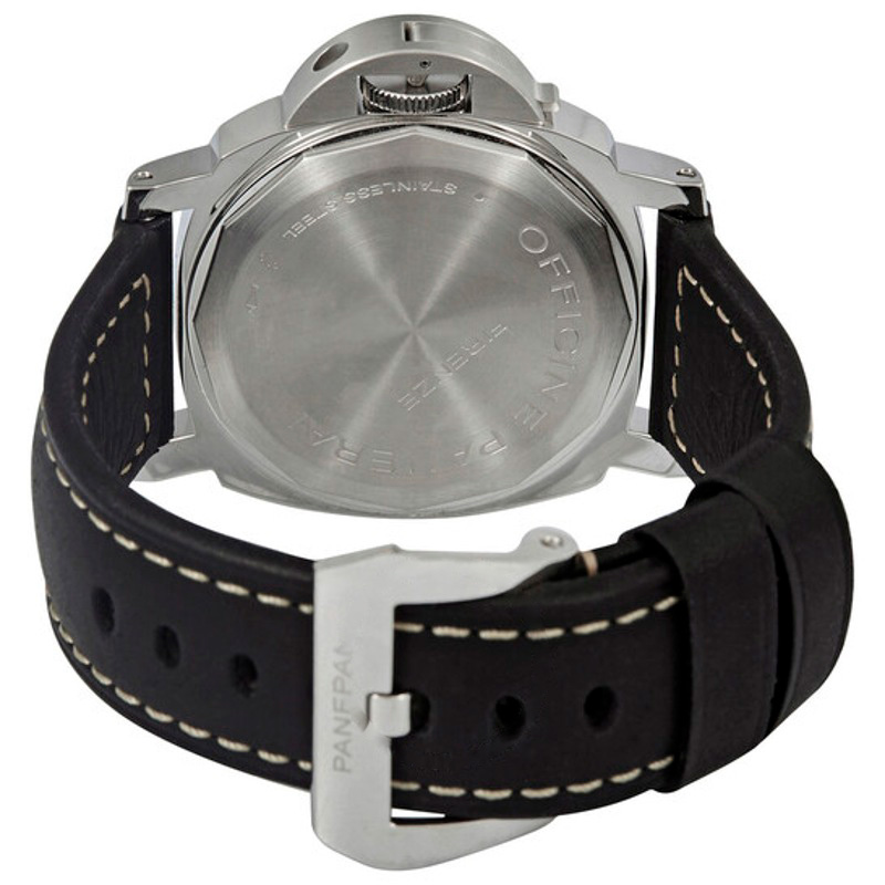 O Panerai Luminor Base Corda Manual Mostrador Preto 44 mm Aposta em linhas limpas e volume preciso — luxo que não grita. Caixa em aço inoxidável, Mostrador preto, 44 mm.