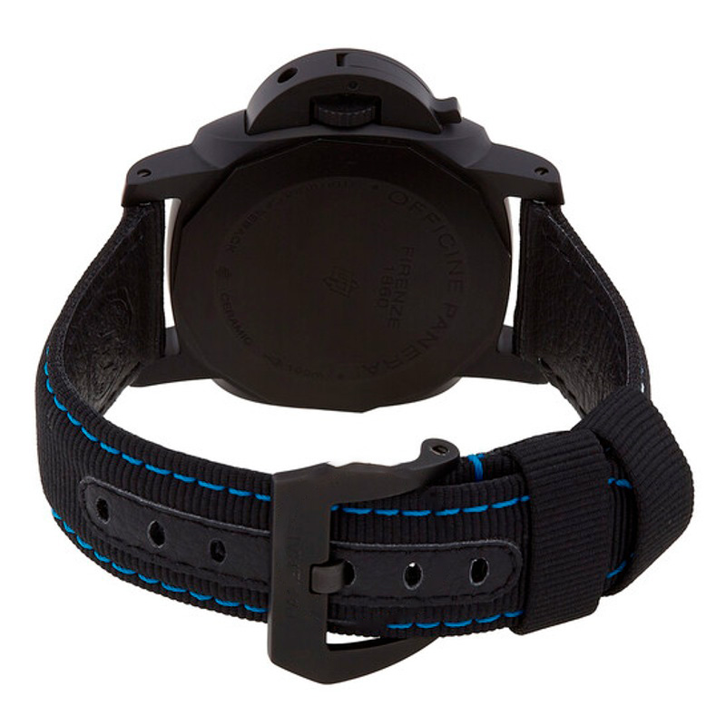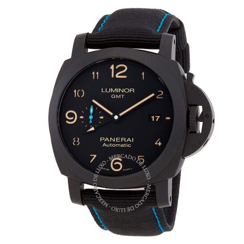 O Panerai Luminor Automático Mostrador Preto 44 mm Aposta em linhas limpas e volume preciso — luxo que não grita. Caixa em cerâmica, Luneta cerâmica, Mostrador preto, 44 mm.
