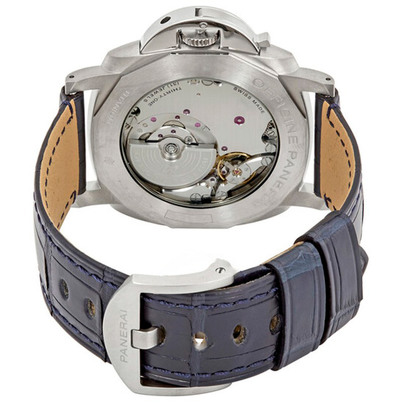 O Panerai Luminor Automático Mostrador Azul 45 mm Aposta em linhas limpas e volume preciso — luxo que não grita. Caixa em titânio, Mostrador azul, 45 mm.