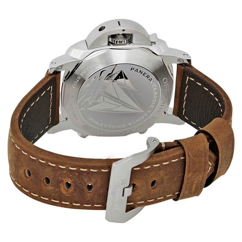 O Panerai Luminor 1950 Automático 44 mm Aposta em linhas limpas e volume preciso — luxo que não grita. Caixa em aço inoxidável, Mostrador preto, 44 mm.