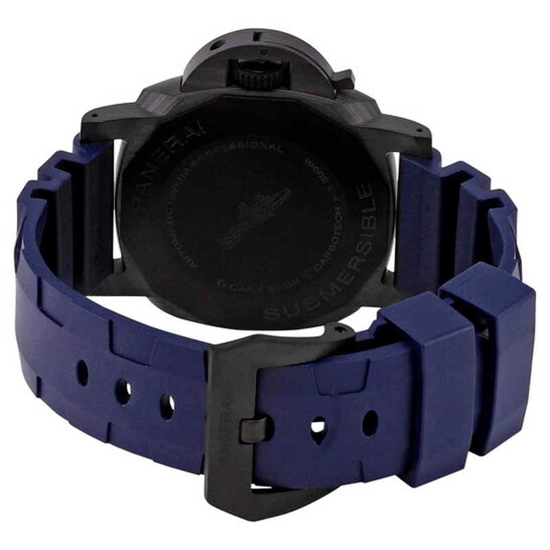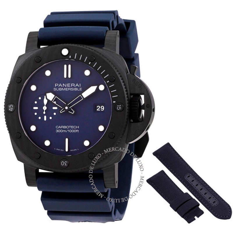 O Panerai Submersível Automático 44 mm Traz uma leitura arquitetônica do tempo com superfícies bem trabalhadas. Mostrador azul, 44 mm.