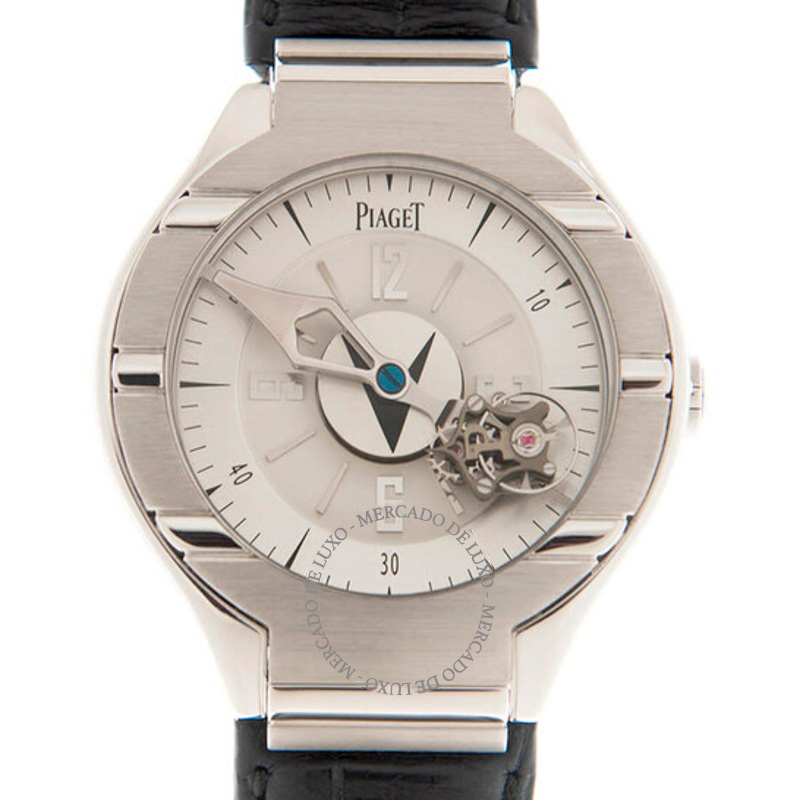 O Piaget AS Polo Tourbillon Corda Manual Mostrador Prateado 45 mm afirma a excelência da alta relojoaria com refinamento estético e rigor técnico. Da arquitetura da caixa ao acabamento dos índices, tudo foi pensado para oferecer elegância e presença no pulso.