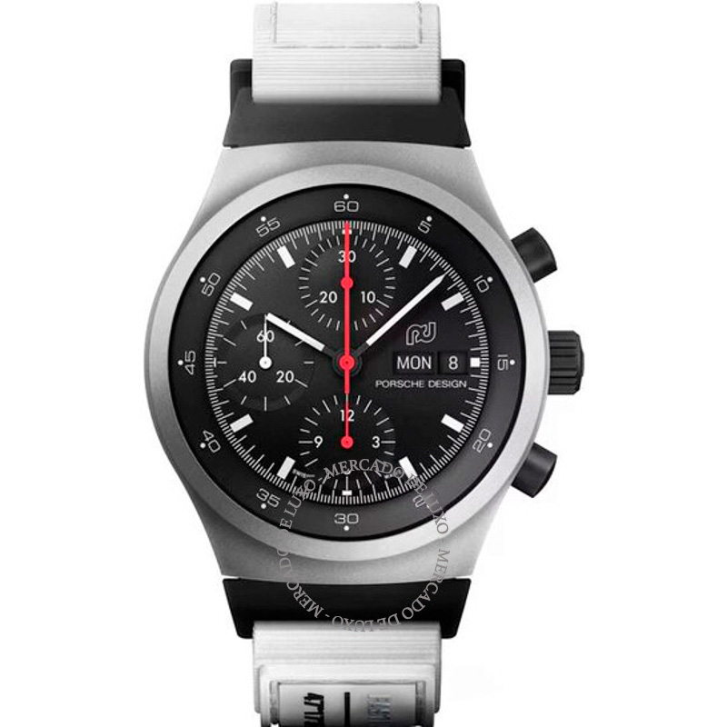O Porsche Design Cronógrafo 1 Automático Mostrador Preto 41 mm Interpreta os códigos da casa com serenidade e atenção à luz. Caixa em titânio, Mostrador preto, 41 mm.